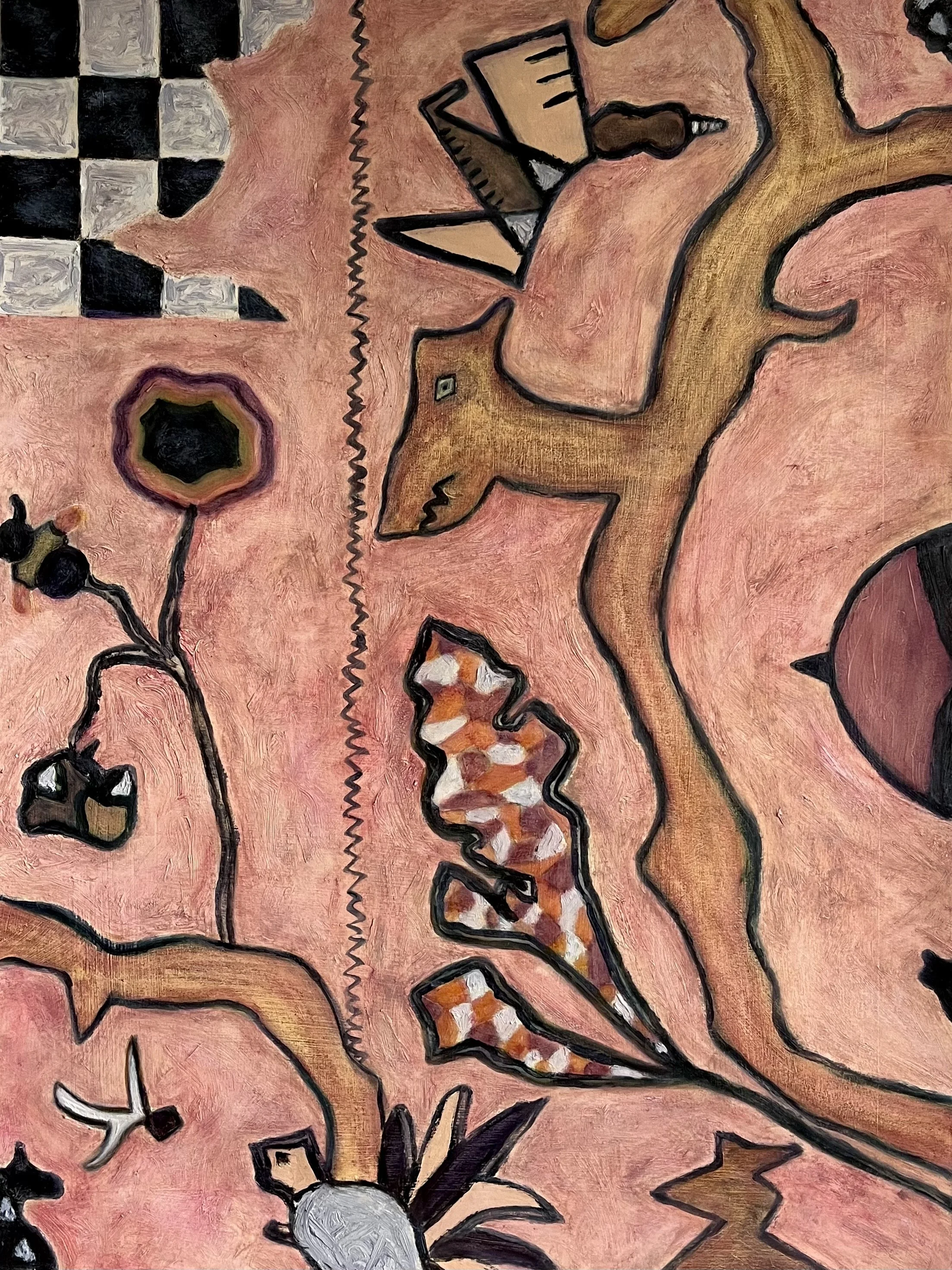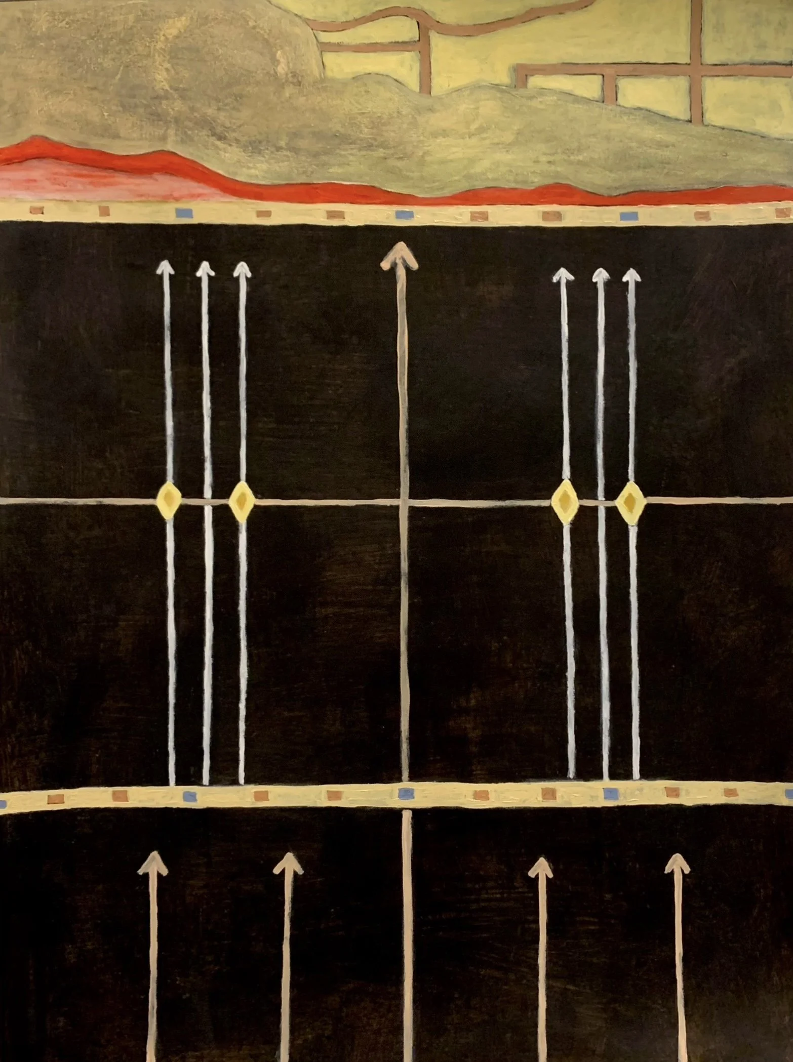 Rooted in the architectural geometry of Ancient Rome, this body of work draws direct visual inspiration from Third-Style frescoes, Severan panel walls, and the strict checkerboard borders of paradeisos paintings. However, what began as an exploration of antiquity evolved into a stark commentary on the cyclical nature of human conflict and the physical barriers we construct.